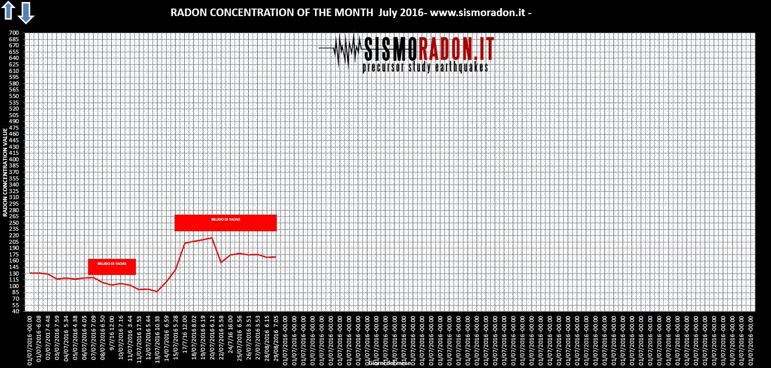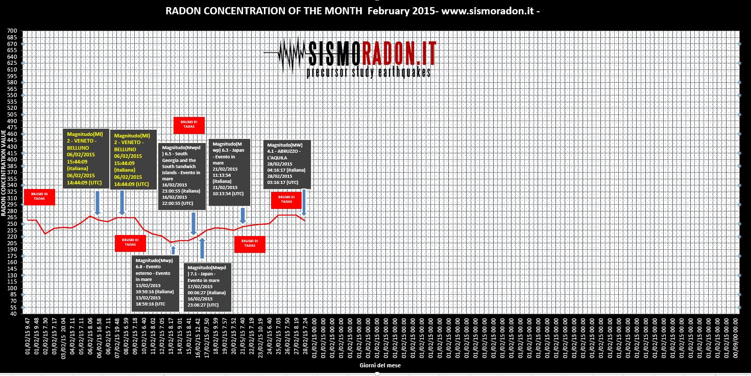 dati di relazione tra aumento della concentrazione Radon e fenomeni tellurici